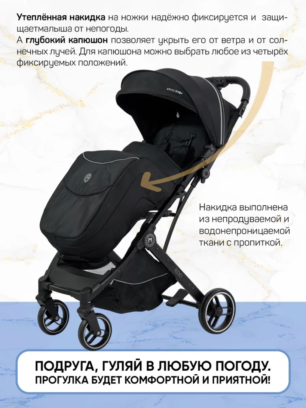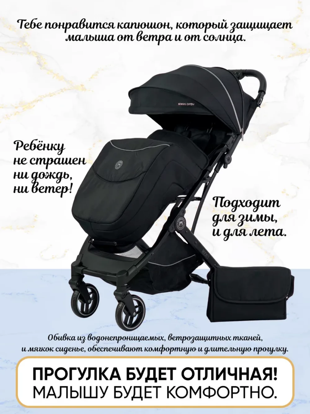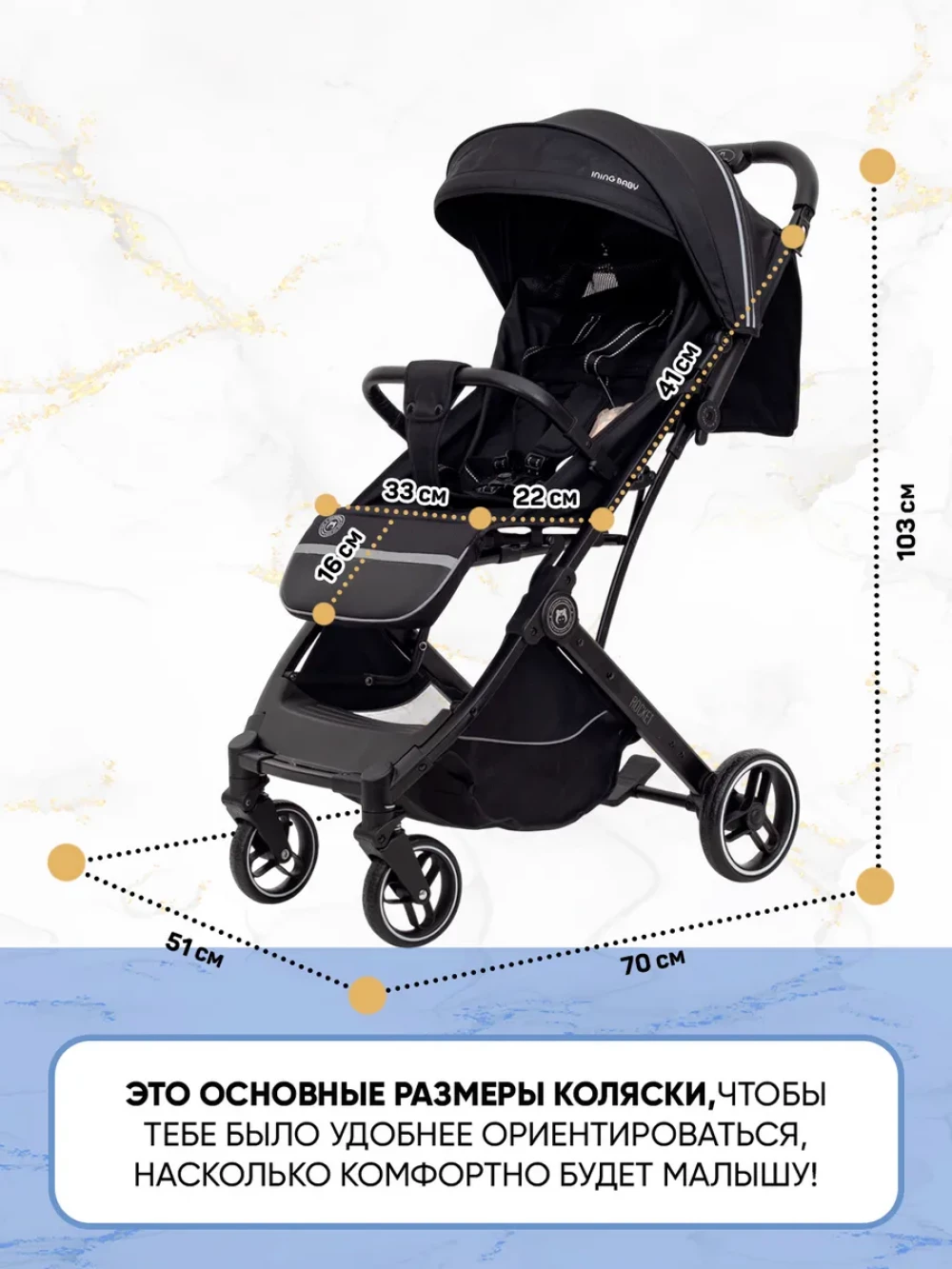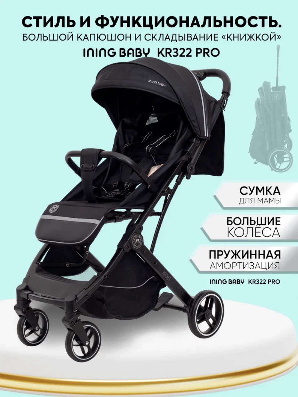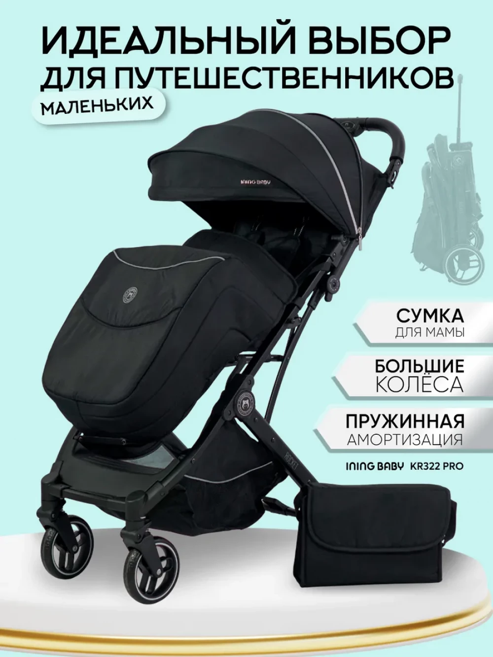 Коляска прогулочная Ining Baby KR322 Pro Black