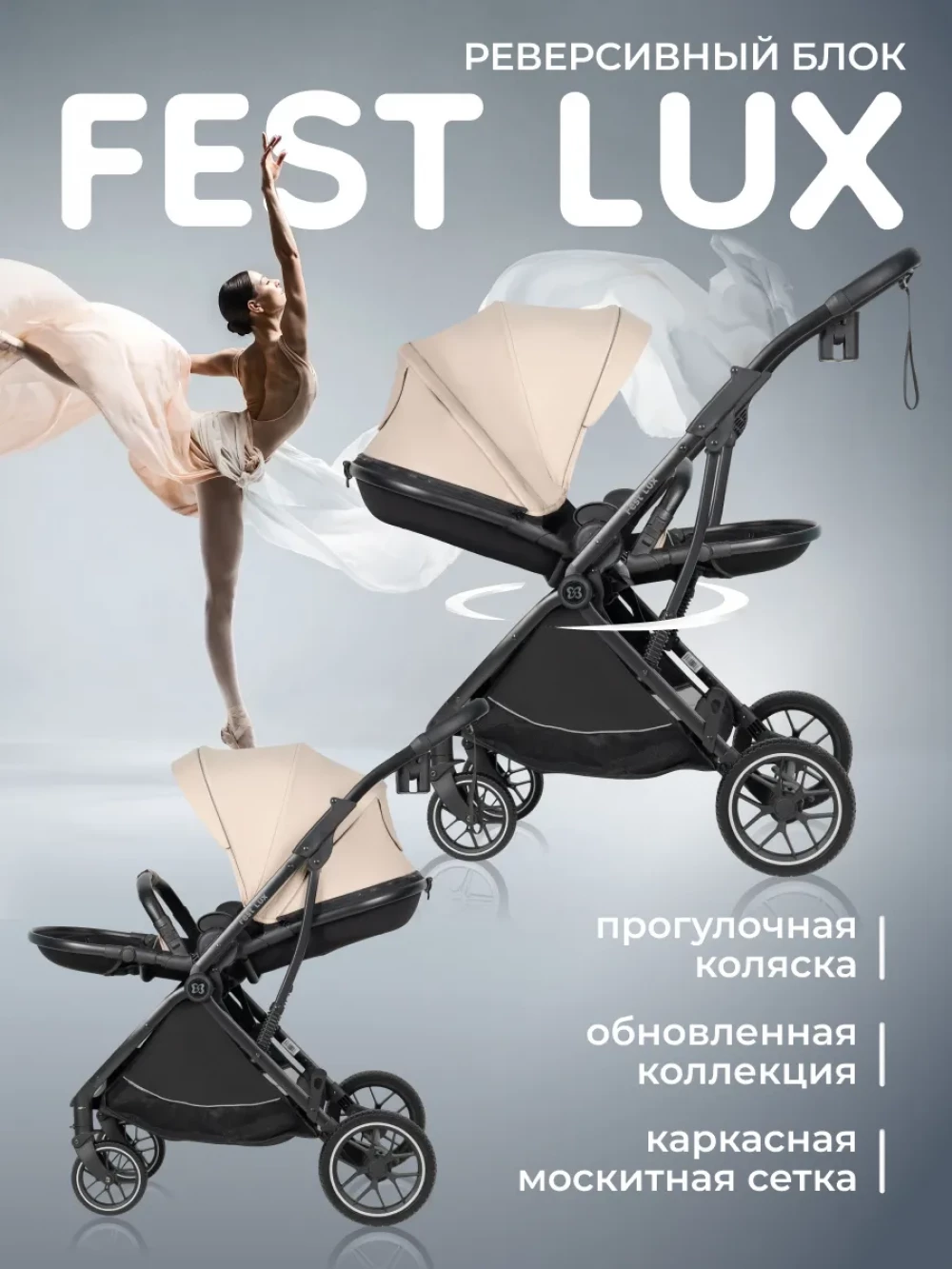 Коляска прогулочная Farfello Fest Lux Beige
