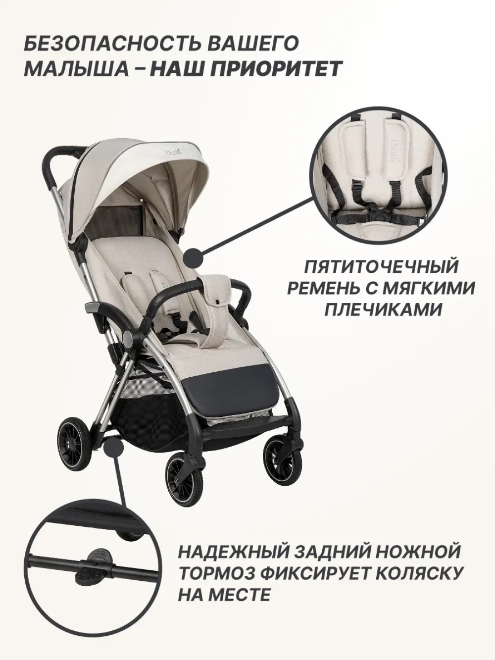 Коляска прогулочная Costa Rio beige shine