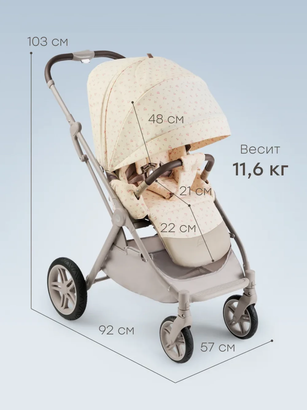 Коляска прогулочная Happy Baby Luna 360 beige flowers