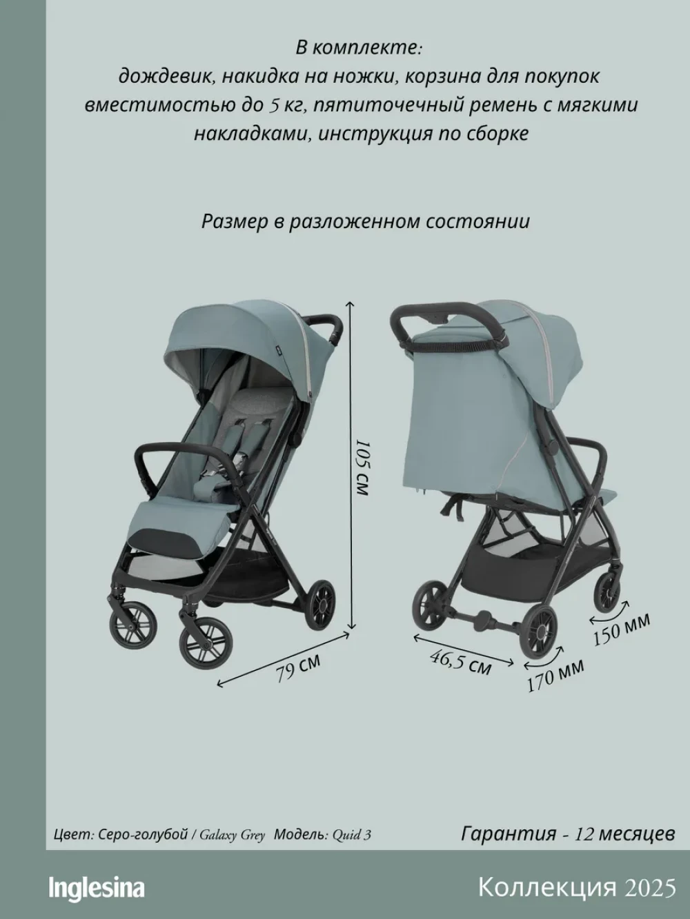 Коляска прогулочная Inglesina Quid 3 Galaxy Grey