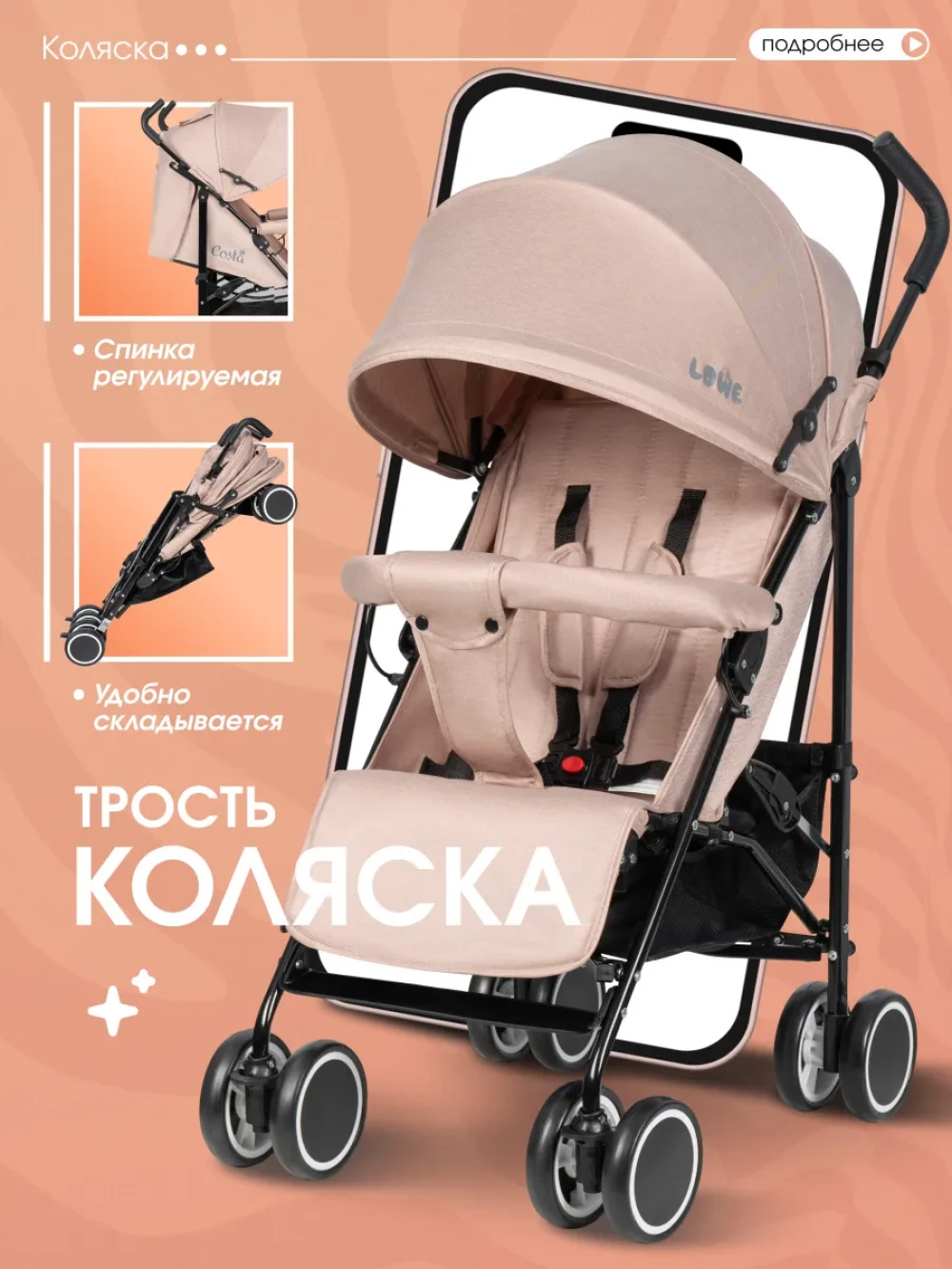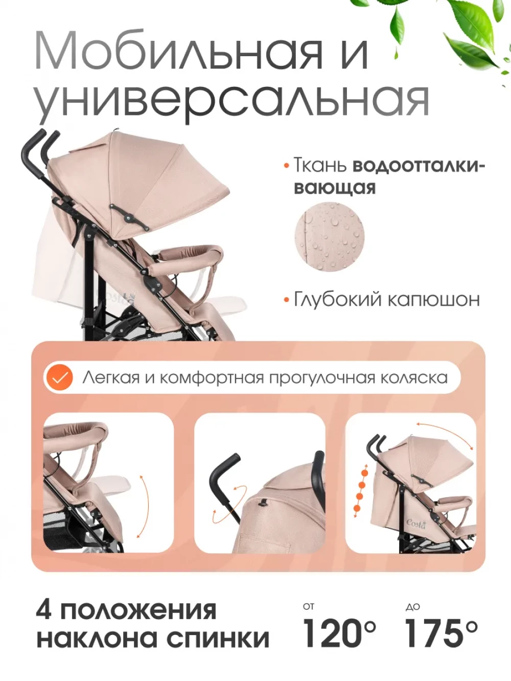 Коляска прогулочная Costa Lowe Beige