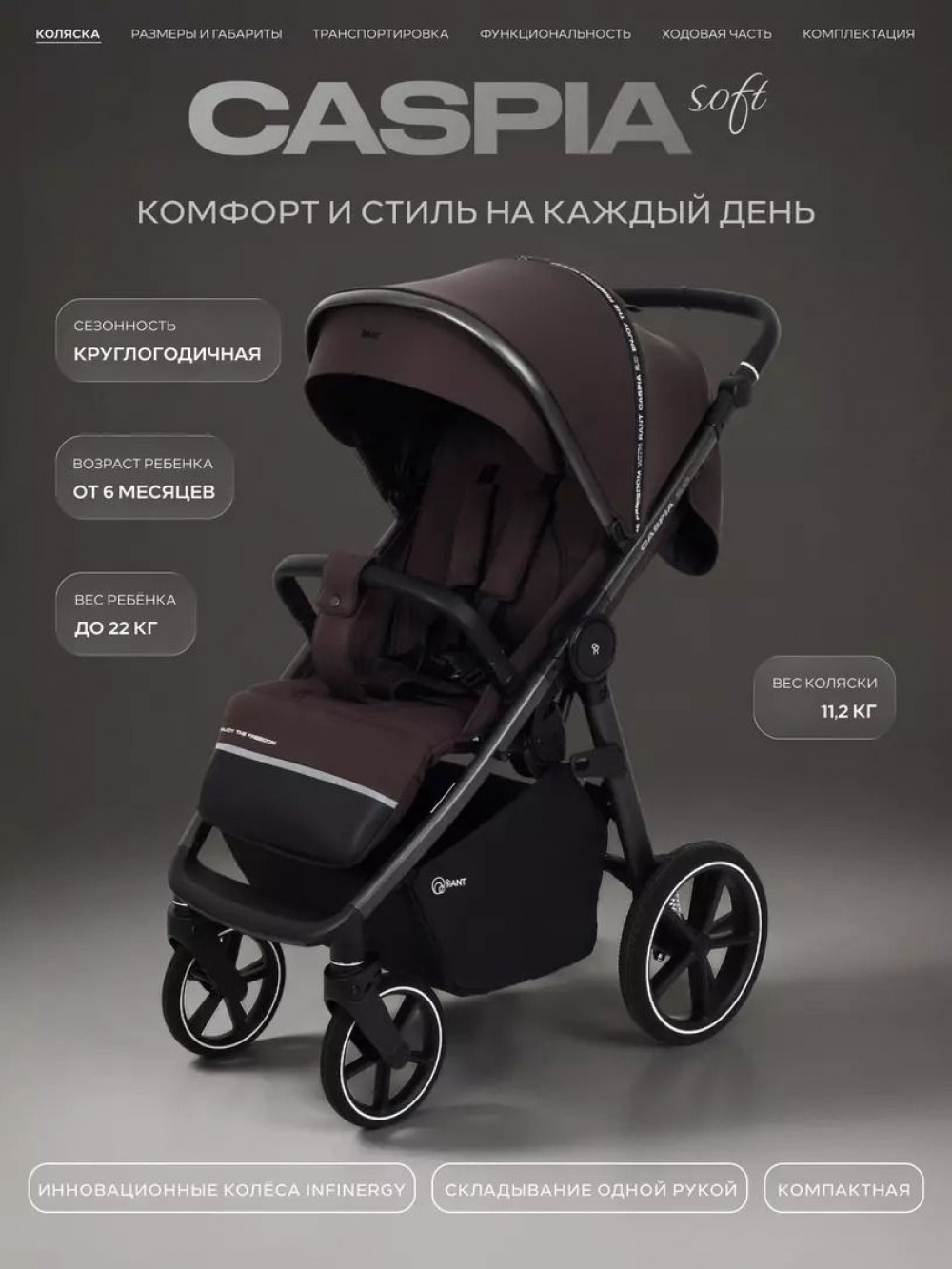 Коляска прогулочная Rant Caspia soft RA100 Shine Brown